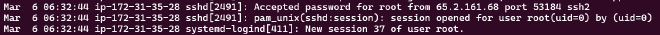 After any successful login, a session number will be assigned. Looking at the picture below, the user root logged in by the attacker being assigned as session number 37