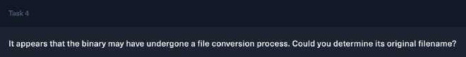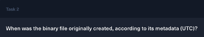 For the following few task, we can use PEStudio to look for the executable’s metadata.