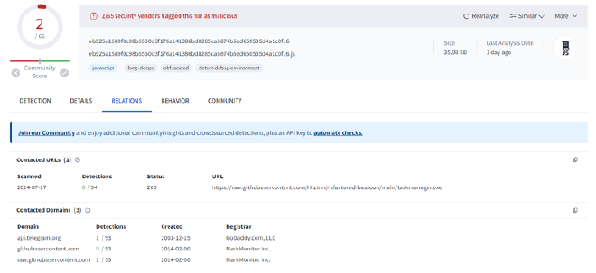 The link provided by the VirusTotal contains a github repository with a malicious executable.