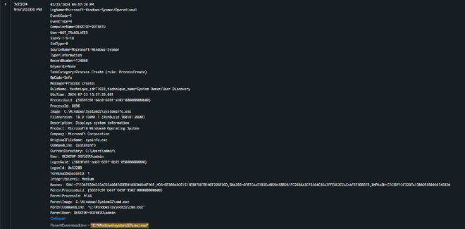 After the attacker successfully login as user admin the first thing they will face is a CMD (Command Prompt). Filtering out parent command line that have “C:\Windows\system32\cmd.exe”. Then look for the nearest timestamp after the attacker log in to the machine.