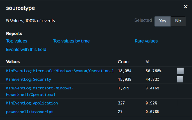 To determine which path is being excluded by Microsoft Defender, select the Windows PowerShell log as the source type.
