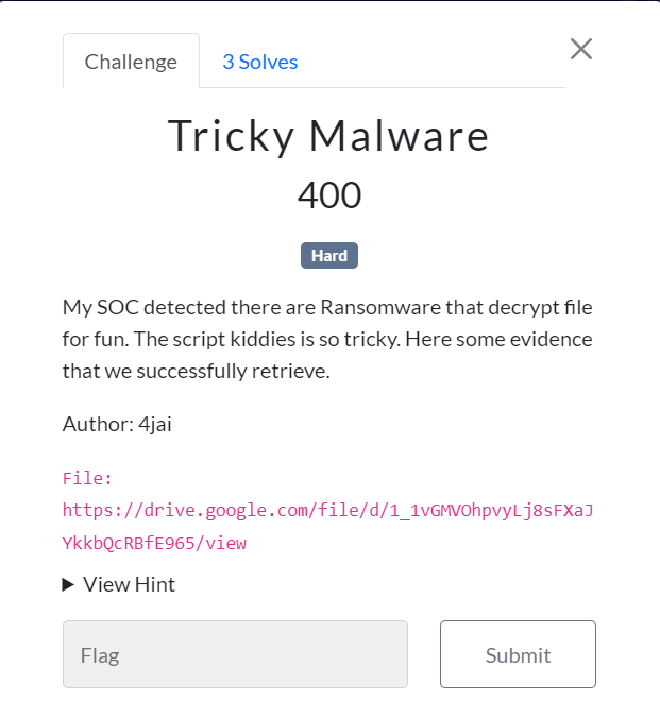 AS Layer2 : FileAddressSpace (tricky-malware/memdump.mem)